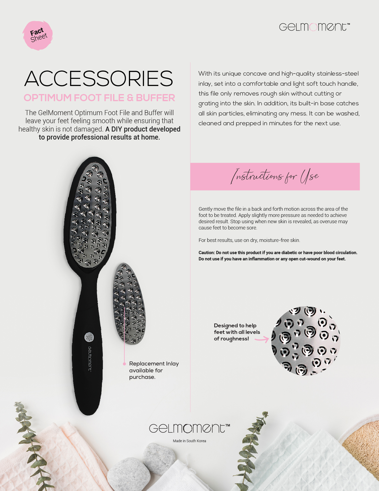 A comfortable and light soft touch handle, along with its unique concave high-quality stainless steel inlay, this file only removes rough skin, ensuring that healthy skin is not damaged.